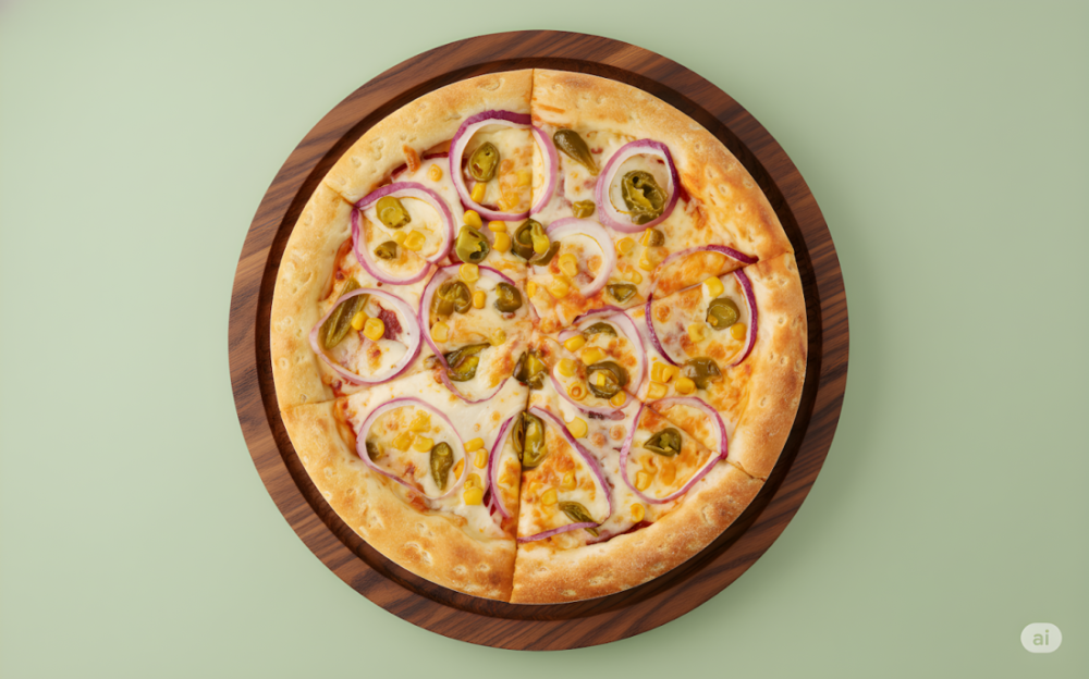 Томатный соус, моцарелла, ветина из говядины, халапеньо, красный лук, кукуруза.