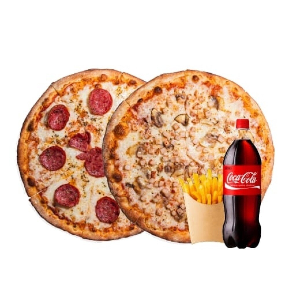 Пепперони + Курица с грибами + Напиток 1л + фри