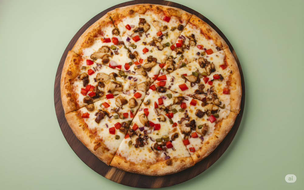 Томатный соус, моцарелла, болгарский перец, красный лук, говяжье филе, халапеньо.