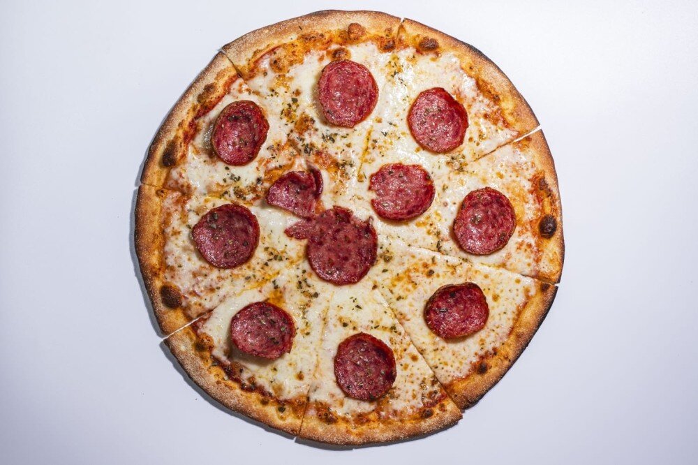 Томатный соус, моцарелла, говяжья колбаса, орегано