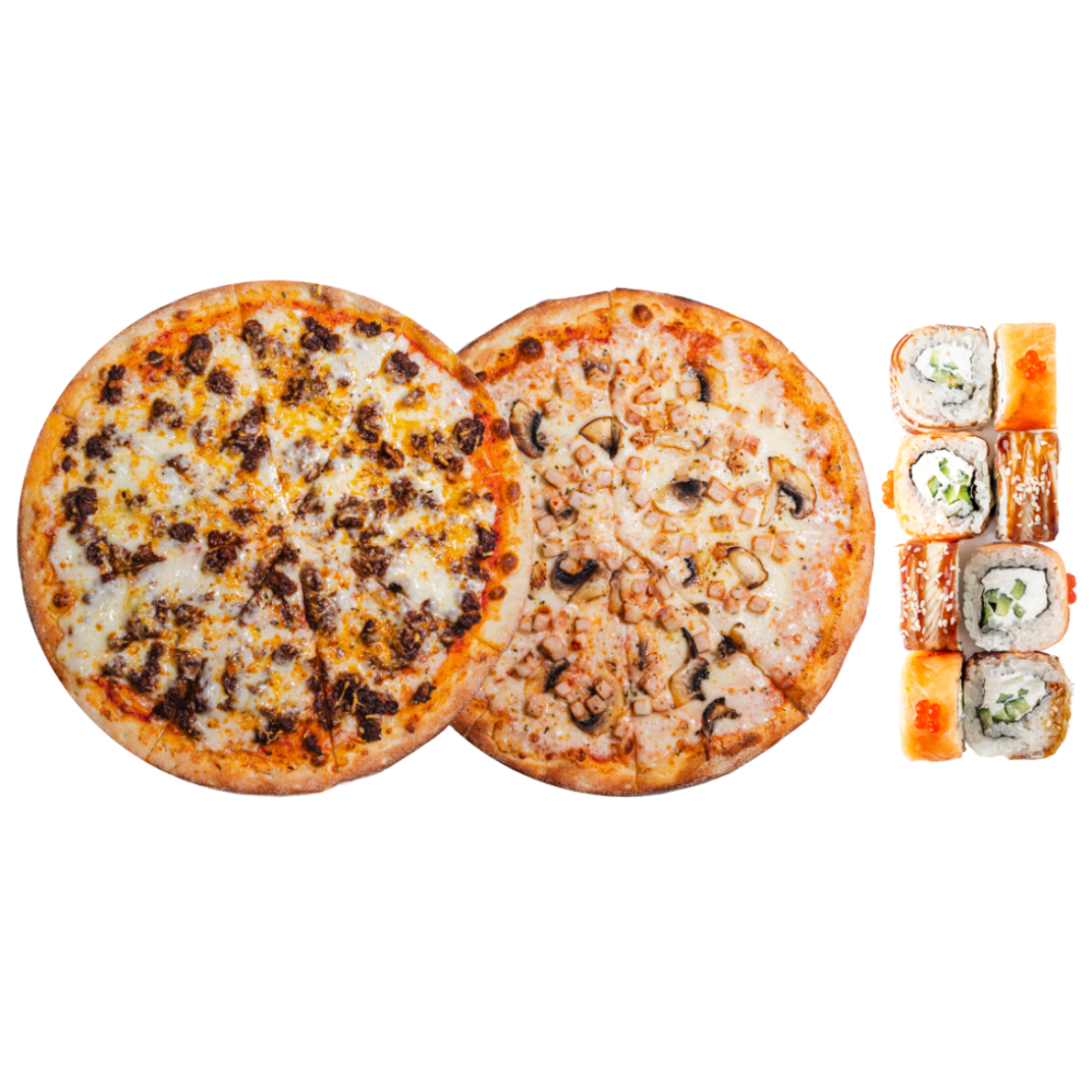 Пицца Болтньезе, Пицца Курица с грибами, Микс ролл