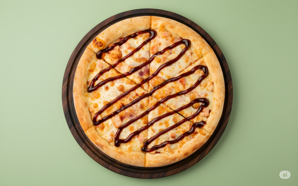 Томатный соус, моцарелла, ветчина из говядины, курица, барбекю соус.