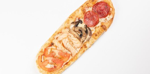 Сырный соус, моцарелла, вешенки, говяжья колбаса, орегано